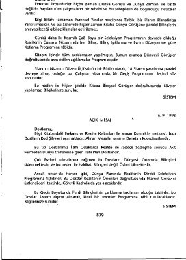 Bilgi Kitabi tamamen Evrensel Yasalar mucibince Tatbiki bir Planin Planetinize