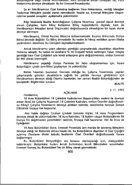 alinan Ikinci bir Çalisma Nizamidif: 18 Çekirdek Kadrolari, verilen Öneriler dogrultusun-