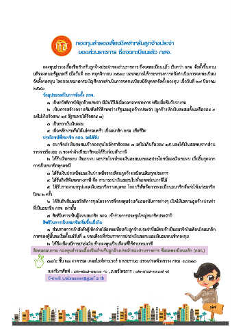 ติดต่อสอบถาม กองทุนส ารองเลี้ยงชีพส าหรับลูกจ้างประจ าของส่วนราชการ ซึ่งจดทะเบียนแล้ว (กสจ.)