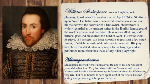 Shakespeare married Anne Hathaway at the age of 18. She was eight
