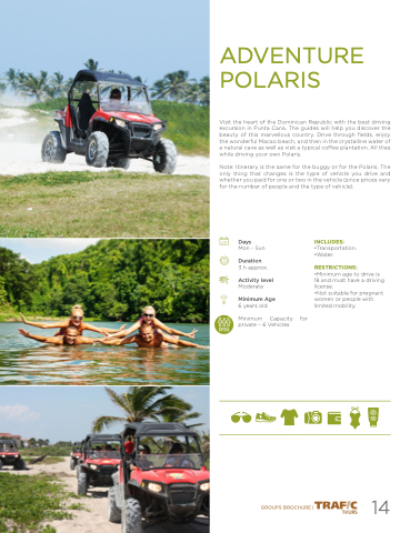 Visit the heart of the Dominican Republic with the best driving excursion in Punta Cana. The guides will help you discover the beauty of this marvellous country. Drive through fields, enjoy the wonderful Macao beach, and then in the crystalline water of a natural cave as well as visit a typical coffee plantation. All thes while driving your own Polaris.