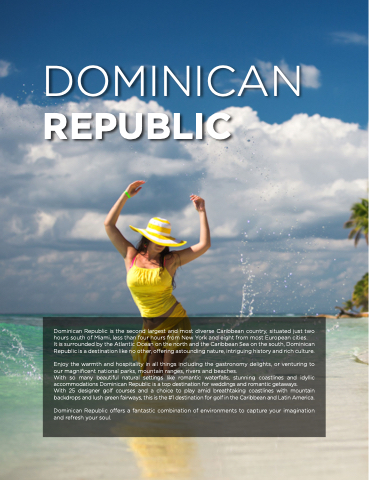 Dominican Republic is the second largest and most diverse Caribbean country, situated just two hours south of Miami, less than four hours from New York and eight from most European cities.