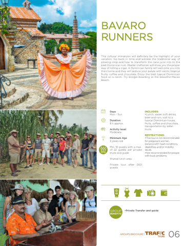 •Lunch, water, soft drinks, beer and rum, visit to a typical Dominican house, fruits, coffee and chocolate, transportation by safari truck.