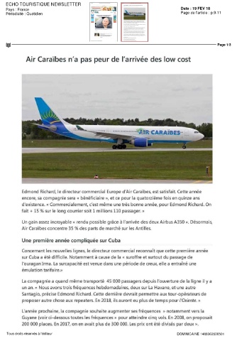 Edmond Richard, le directeur commercial Europe d'Air Caraïbes, est satisfait. Cette année