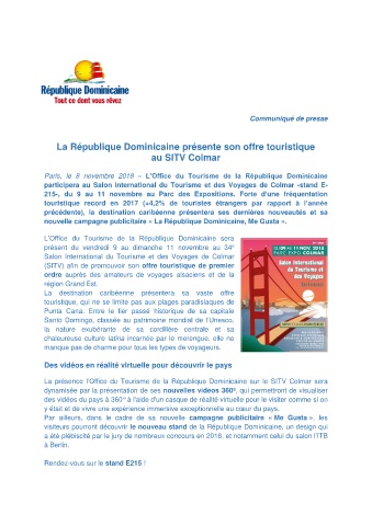 La présence l’Office du Tourisme de la République Dominicaine sur le SITV Colmar sera