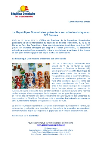 Paris, le 13 février 2018 – L’Office du Tourisme de la République Dominicaine