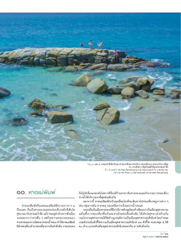1., ๓. และ 4. หาดแมร่ า พงึ ถอื เปน็ แนวชายหาดทเี่ หมาะสา หรบั การทอ่ งเทย่ี วแบบครอบครวั มากทสี่ ดุ ๒. ลานหนิ ขาว สญั ลกั ษณส์ า คญั ของหาดแมร่ า พงึ 1., 3. and 4. Hat Mae Ramphueng is an ideal beach for a family trip. 2. Lan Hin Khao, a vital landmark of Hat Mae Ramphueng.