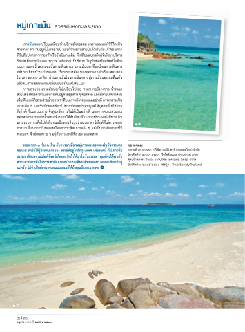 ความสวยของเกาะมันนอกไม่เปลี่ยนไปเลย หาดทรายยังคงขาว น้าทะเล สวยใส ยงั คงมศี าลาและทางเดนิ อยตู่ ามมมุ ตา่ ง ๆ ของหาด แตก่ ม็ หี ายไปบางสว่ น เพมิ่ เตมิ มากค็ อื สระวา่ ยนา้ ธรรมชาตบิ นเกาะยงั คงถกู ดแู ลอยา่ งดี อาจเพราะเปน็ เกาะเล็ก ๆ และรับนักท่องเที่ยวไม่มากนักและไม่อนุญาตให้บุคคลที่ไม่ใช่แขก ที่เข้าพักขึ้นมาบนเกาะ จึงดูแลจัดการกันได้เป็นอย่างดี นอกจากความสวยงาม ของหาดทรายและน้าทะเลที่เราจะได้สัมผัสแล้ว เกาะมันนอกยังมีทางเดิน เลาะรอบเกาะเพอื่ ไปยงั หนิ ขนมปงั ลานหนิ รปู รา่ งแปลกตา ไฮไลตท์ ไี่ มค่ วรพลาด การมาเที่ยวเกาะมันนอกเหมือนการมาติดเกาะจริง ๆ แต่เป็นการติดเกาะที่มี ความสุข พักผ่อนสบาย ๆ อยู่กับธรรมชาติที่สวยงามและสงบ