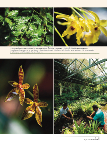 ภายในโรงเรอื นเปน็ ทศี่ กึ ษาและขยายพนั ธพ์ุ ชื สวนในภาคตะวนั ออกอยา่ งละเอยี ด ทงั้ กลว้ ยไมห้ ลากหลายสายพนั ธ์ุ รวมไปถงึ เปน็ ทขี่ ายไมด้ อกไมใ้ บสวยงามในราคายอ่ มเยา