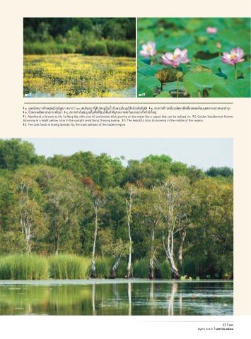 blooming in a bright yellow color in the sunlight amid Nong Charung swamp. 3. The beautiful lotus blossoming in the middle of the swamp. 4. The lush forest in Bueng Samnak Yai, the main wetland of the Eastern region.