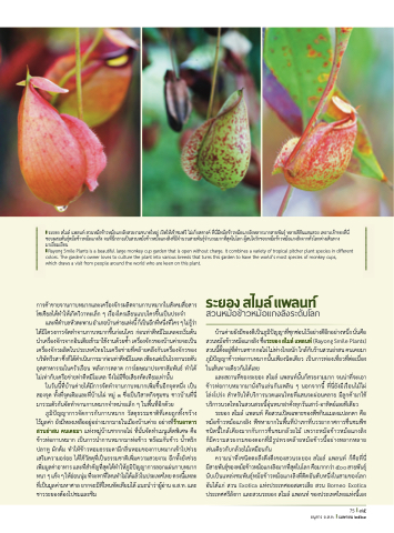 ความน่าทึ่งชนิดตะลึงตึงตึงของสวนระยอง สไมล์ แพลนท์ ก็คือที่นี่ มสี ายพนั ธข์ุ องหมอ้ ขา้ วหมอ้ แกงลงิ มากทส่ี ดุ ในโลก คอื มากกวา่ ๕๐๐ สายพนั ธ์ุ นับเป็นแหล่งชมพันธุ์หม้อข้าวหม้อแกงลิงที่ติดอันดับหนึ่งในสามของโลก อันได้แก่ สวน Exotica แห่งประเทศออสเตรเลีย สวน Borneo Exotica ประเทศศรีลังกา และสวนระยอง สไมล์ แพลนท์ ของประเทศไทยแห่งน้ีเอง