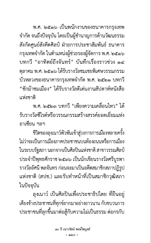 พ.ศ. ๒๕๑๖ เป็็นพนักงานข้องธนาคารีกรี่งเที่พ จาํา กดั จนถง่ ป็จั จบ่ นั โดยัเป็น็ ผชู้้ าํา นาญการีดา้ นวฒั นธรีรีมื่ สืังกัดศูนยั์สืังค่ตศิลัป็์ ฝ่ายัการีป็รีะช้าสืัมื่พันธ์ ธนาคารี กรีง่ เที่พจาํา กดั ในตาํา แหนง ผชู้้ ว ยัรีองผจู้ ดั การี พ.ศ. ๒๕๑๖ บที่กว่ “อาที่ิตยั์ถ่งจันที่รี์” บันที่่กเรี่องรีาวช้วง ๑๔ ตลั่ าคมื่ พ.ศ. ๒๕๑๖ ไดรี้ บั รีางวลัั ช้มื่เช้ยัพเิ ศษ์วรีรีณกรีรีมื่ บัวหลัวงข้องธนาคารีกรี่งเที่พจําากัด พ.ศ. ๒๕๒๑ บที่กว่ “ช้ักมื่้าช้มื่เมื่่อง” ได้รีับรีางวัลัด่เดนงานสืัป็ดาห์หนังสื่อ แหงช้าติ