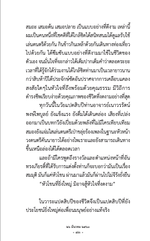 สืมื่ถะ เสืมื่อตน้ เสืมื่อป็ลัายั เป็น็ แบบอยัา งที่ด่ ง่ ามื่ เหลัา น่ ผมื่เป็น็ คนหนง่ ที่โ่ ช้คดที่่ ไ่ ดไ้ กลัช้้ ดิ ไดสื้ นที่ิ สืนมื่ไดด้ แู ลัรีบั ใช้้ เลัน ดนตรีด่ ว้ ยักนั กนิ ข้า้ วกนิ เหลัา้ ดว้ ยักนั เดนิ ที่างที่อ งเที่ยั่ ว ไป็ด้วยักัน ได้ซึ่่มื่ซึ่ับแบบอยัางที่่ด่งามื่มื่าใช้้ในช้่วิตข้อง ตวั เอง จนมื่นั ใจที่จ่ ะกลัา วไดเ้ ตมื่็ ป็ากเตมื่็ คาํา วา ตลัอดรีะยัะ เวลัาที่ไ่ ดรี้ จู้ กั ไดรี้ ว มื่งานไดไ้ กลัช้้ ดิ ที่า นมื่าเป็น็ เวลัายัาวนาน กวาสืบิ หา้ ป็ไี ด้ป็รีะจกั ษ์์ช้ดั อนั ป็รีาศจากการีเคลั่อบแคลัง สืงสืัยัใดๆในหัวใจที่่ถ่งพรี้อมื่ด้วยัค่ณธรีรีมื่ มื่่วิถ่การี ดาํา รีงช้พ่ เรียั่ บงา ยัดว้ ยัคณ่ ภู่าพข้องช้ว่ ติ ที่ง่ ดงามื่อยัางที่สื่ ด่