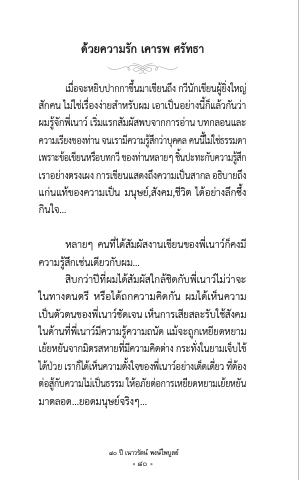 เมื่อ่ จะหยับิ ป็ากกาข้น่ มื่าเข้ยั่ นถง่ กวน่ กั เข้ยั่ นผยัู้ งิ ใหญ สืกั คน ไมื่ใ ช้เ รีอ่ งงายัสืาํา หรีบั ผมื่ เอาเป็น็ อยัางนก่ แ็ ลัว้ กนั วา ผมื่รีจู้ กั พเ่ นาว์ เรีมื่ิ แรีกสืมื่ั ผสืั พบจากการีอา น บที่กลัอนแลัะ ความื่เรียั่ งข้องที่า น จนเรีามื่ค่ วามื่รีสืู้ ก่ วา บค่ คลั คนนไ่ มื่ใ ช้ธ รีรีมื่ดา เพรีาะข้อ้ เข้ยั่ นหรีอ่ บที่กว่ข้องที่า นหลัายัๆช้นิ ป็ะที่ะกบั ความื่รีสืู้ ก่ เรีาอยัา งตรีงเผง การีเข้ยั่ นแสืดงถง่ ความื่เป็น็ สืากลั อธบิ ายัถง่ แกนแที่้ข้องความื่เป็็น มื่น่ษ์ยั์,สืังคมื่,ช้่วิต ได้อยัางลั่กซึ่่ง กินใจ...