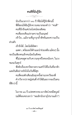นับเป็็นเวลัากวา ๓๐ ป็ี ที่่ฉันไดรี้ ู้จักพ่คนน่ พ่ที่่สือนให้ฉันรีู้จักความื่หมื่ายัข้องคาํา วา “คนด่” คนที่่น่กถ่งแตป็รีะโยัช้น์ข้องสืังคมื่ คนที่่มื่องเห็นแงงามื่ความื่เป็็นมื่น่ษ์ยั์ เข้้าใจ...แมื่้ยัามื่ที่่ถูกรี่กลัําาสืิที่ธิแลัะความื่เป็็น