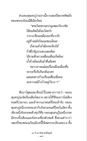พ่เนาว์พูดแลัะเข้่ยันไว้ในหลัายัวารีะวา กลัอน สืน่ ที่รีภู่จู ะจดั เรียั่ งเสืยั่ งไพเรีาะ เพรีาะใช้ว้ ธิ ข้่ องการีไลัเ สืยั่ ง ดนตรี่ป็รีะกอบ แลัะถ้าหากเอาดนตรี่ไที่ยัเข้้าจับ กลัอน สื่นที่รีภูู่หน่งวรีรีคจะเที่ากับจังหวะดนตรีไ่ ที่ยัในอัตรีาช้ัน เดยั่ วหนง่ จงั หวะพอด่ สืรีป็่ กค็ อ่ กลัอนสืน่ ที่รีภู่ใู นหนง่ วรีรีค มื่่ครีบที่ังเสื่ยังแลัะจังหวะที่่ลังตัวพอด่ ซึ่่งตามื่ตําารีาวา เพลังป็ข้ี องพรีะอภู่ยัั มื่ณบ่ ที่นใ่ ช้เ้ พลังกรีะเรียั่ นที่อง ๒ ช้นั
