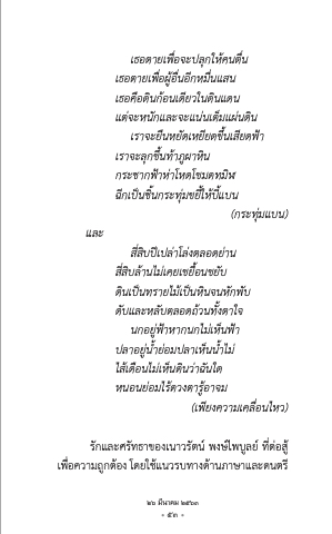 เธอตยู่เพือจ้ะปลำุก้ใหั้คนตืน เธอตยู่เพือผ่้่อืนอ่ก้หัมืนแสน เธอคือด้ินก้้อนเด้่ยู่วในด้ินแด้น แตจ้่ ะหันัก้แลำะจ้ะแน่นเต็มแผ่่นด้ิน
