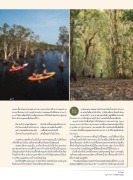 แดดสายเพ่ิมความแรงร้อน เราเทียบเรือตรงท่าใกล้สานักงานของสวน พฤกษศาสตร์ระยอง ขนมพื้นบ้านอย่างข้าวเหนียวยัดไว้ในเน้ือขนุนและ นา้ สมนุ ไพรเยน็ ฉา่ ดบั รอ้ น ขณะทใี่ ครสกั คนมองไกลไปยงั ปา่ สเี ขยี วทโ่ี อบลอ้ ม บึงอยู่อีกฟากด้าน จูงจักรยานและเหนี่ยวนาเราเข้าไปสู่โลกแห่งแมกไม้และ นานาชีวิตบนแผ่นดินกลางน้าของบึงสานักใหญ่