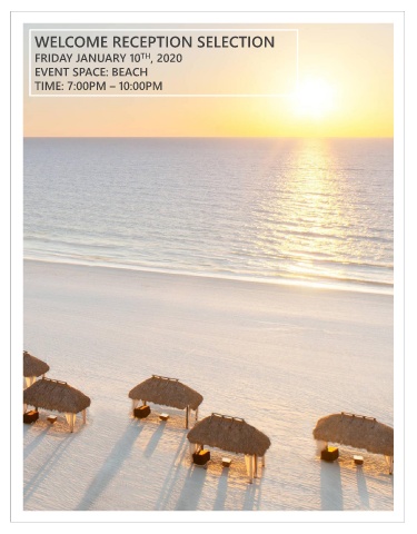 WELCOME RECEPTION SELECTION FRIDAY JANUARY 10 , 2020 TH EVENT SPACE: BEACH TIME: 7:00PM – 10:00PM
