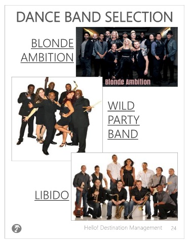 DANCE BAND SELECTION BLONDE AMBITION WILD PARTY BAND LIBIDO Hello! Destination Management 24