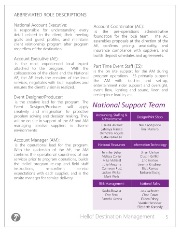 goals and guest profiles, and maintains assembles proposals at the direction of the