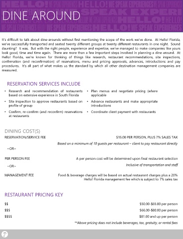 It’s difficult to talk about dine-arounds without first mentioning the scope of the work we’ve done. At Hello! Florida,