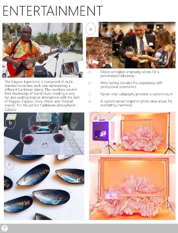 The Calypso Experience is comprised of multi- b) Wine tasting elevates this experience with