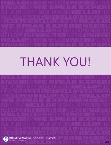 THANK YOU! HELLO! FLORIDA DESTINATION MANAGEMENT we speak experiences 48