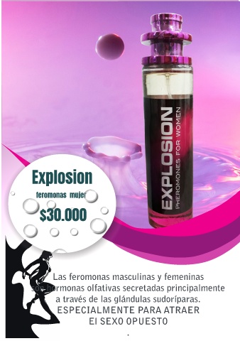 Explosion feromonas mujer $30.000 Las feromonas masculinas y femeninas son hormonas olfativas secretadas principalmente a través de las glándulas sudoríparas. ESPECIALMENTE PARA ATRAER El SEXO OPUESTO .
