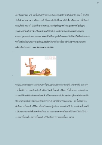 20 และให้ท าสลับข้างกัน ต่อมาขั้นตอนที่ 3 ให้นอนหงายราบกับพื้น งอเข่าขาคู่เข้าหาตัวพร้อมเอามือ