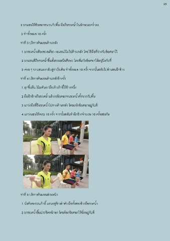 2. ยกแขนที่ถือขวดน ้าขึ้นตั้งตรงเหนือศีรษะ โดยที่เกร็งข้อศอกให้อยู่นิ่งกับที่