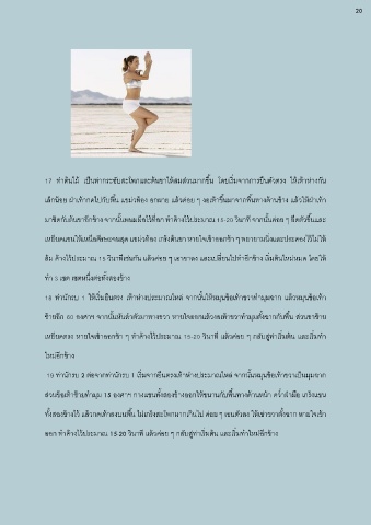 ออก ท าค้างไว้ประมาณ 15-20 วินาที แล้วค่อย ๆ กลับสู่ท่าเริ่มต้น และเริ่มท าใหม่อีกข้าง