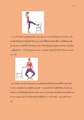 ๆ จนรู้สึกตึงหน้าขา จากนั้นให้กลับสู่ท่าแรกอย่างช้า ๆ แล้วเริ่มท าใหม่อีกครั้ง โดยให้ท าทั้งหมด 3 เซต เซต