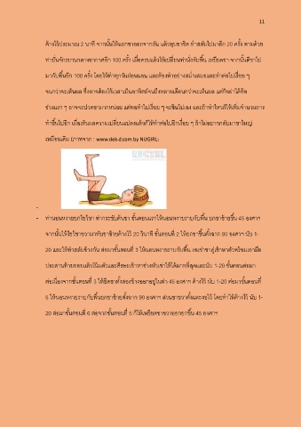 20 และให้ท าสลับข้างกัน ต่อมาขั้นตอนที่ 3 ให้นอนหงายราบกับพื้น งอเข่าขาคู่เข้าหาตัวพร้อมเอามือ