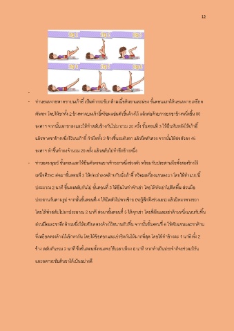 ที่เหยียดตรงค้างไว้เข้าหากัน โดยให้ข้อศอกและเข่าชิดกันให้มากที่สุด โดยให้ท าข้างละ 1 นาที ทั้ง 2