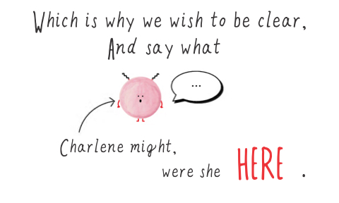 WHICH IS WHY WE WISH TO BE CLEAR, AND SAY WHAT .. ~t• (H ... CHARLENE MIGHT, WERE SHE HERE .