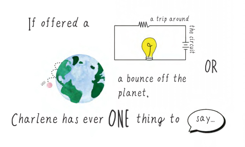 IF OFFERED A A TRIP AROUND CHARLENE HAS EVER ONE THING TO SAY... A BOUNCE OFF THE PLANET, OR THE CIRCUIT WEEEE!
