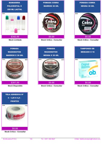 Distribuidora P.R.O. 165 Tel.: 0351-458-8927 E-Mail: distribuidorapro@hotmail.com