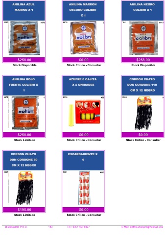 Distribuidora P.R.O. 183 Tel.: 0351-458-8927 E-Mail: distribuidorapro@hotmail.com