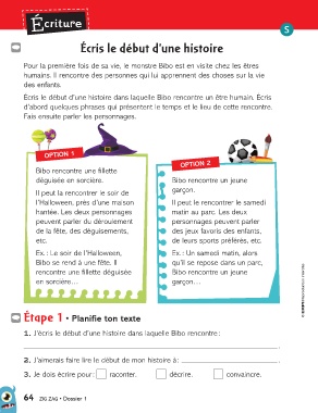 1. J’écris le début d’une histoire dans laquelle Bibo rencontre :