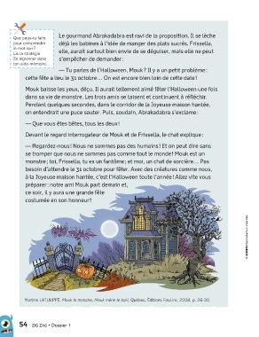 Martine LATULIPPE, Mouk le monstre, Mouk mène le bal !, Québec, Éditions FouLire, 2008, p. 26-30.