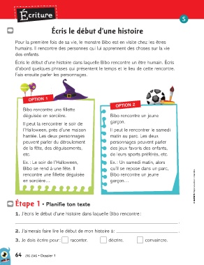 1. J’écris le début d’une histoire dans laquelle Bibo rencontre :
