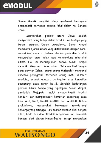 Sunan Gresik memiliki sikap moderasi beragama