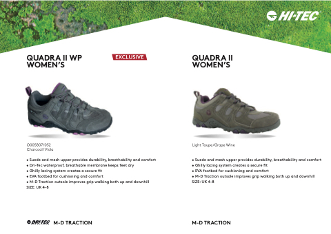 • M-D Traction outsole improves grip walking both up and downhill SIZE: UK 4-8