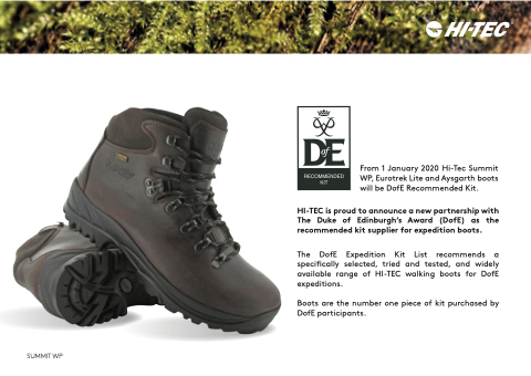 From 1 January 2020 Hi-Tec Summit WP, Eurotrek Lite and Aysgarth boots will be DofE Recommended Kit.