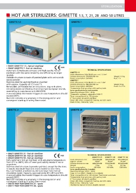 HOT AIR STERILIZERS: GIMETTE 1.5, 7, 21, 28 AND 50 LITRES