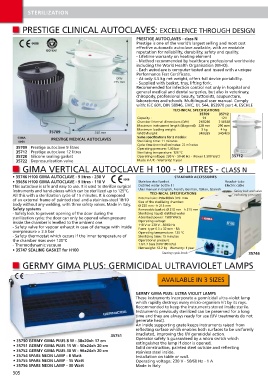 GIMA PRESTIGE MEDICAL AUTOCLAVES Same specifications for 2 models: