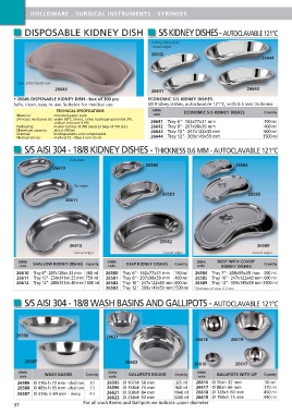 S/S AISI 304 - 18/8 WASH BASINS AND GALLIPOTS - AUTOCLAVABLE 121°C