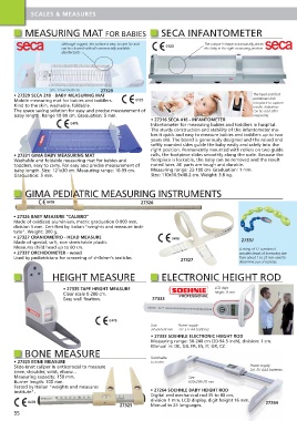 • 27331 GIMA BABY MEASURING MAT rails, the footpiece slides smoothly along the scale. Because the