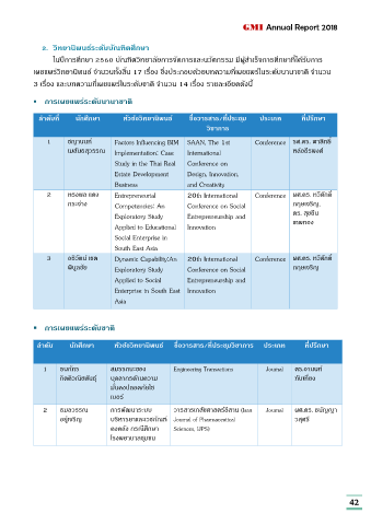 3 เรื่อง และบทความที่เผยแพร่ในระดับชาติ จ านวน 14 เรื่อง รายละเอียดดังนี้